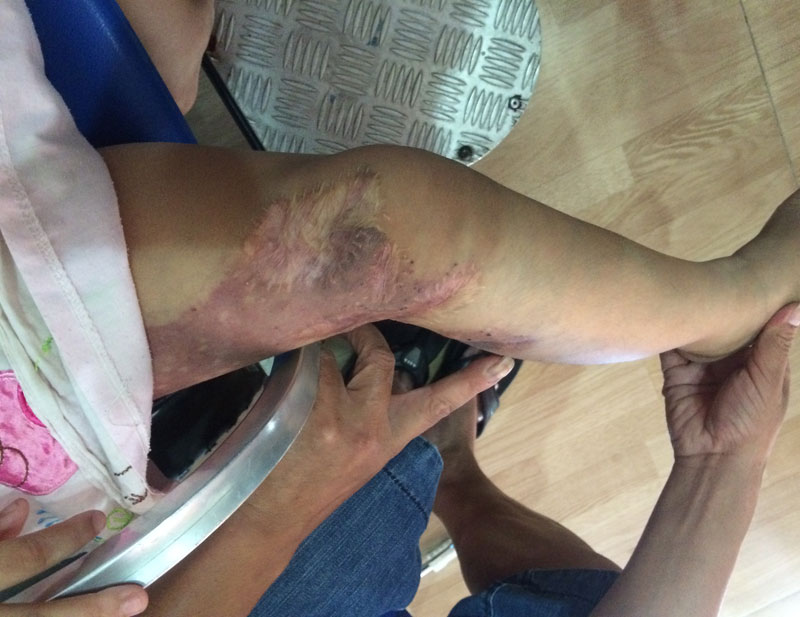 Bệnh nhi trước đó đã được phẫu thuật dị dạng mạch máu ở hai chân. Ảnh nguồn: Vietnamnet |