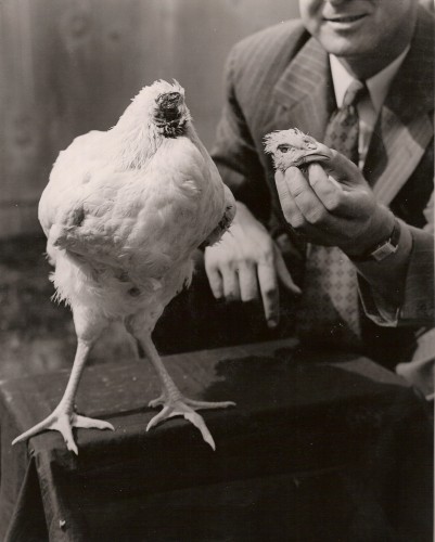Không chỉ con người được biết đến với việc tồn tại mà không có đầu. Mike, một con gà đặc biệt đã sống không có đầu từ ngày 10/10/1945. Ngày ấy, gia đình Olsen, chủ của Mike quyết định thịt nó để làm bữa tối. Ông chồng Lloyd Olsen đã dùng búa rìu chặt đứt đầu con gà.