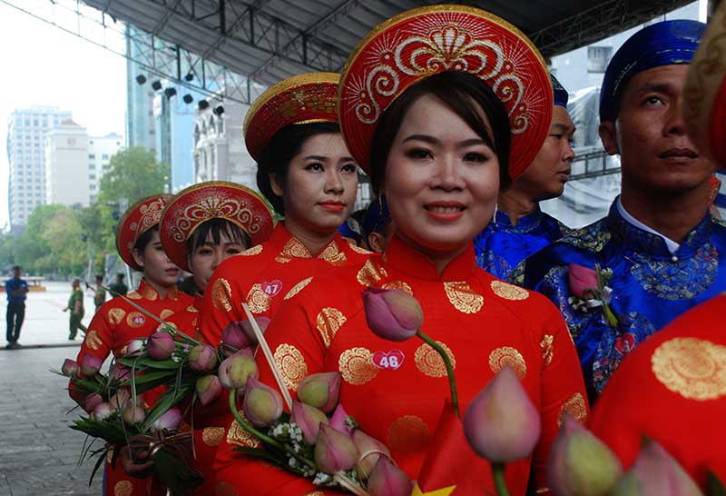 Tại TP.HCM, nhân ngày vui Quốc Khánh Trung tâm Hỗ trợ Thanh niên công nhân đã tổ chức lễ cưới cho 100 cặp đôi có hoàn cảnh khó khăn là công nhân, lao động nghèo.