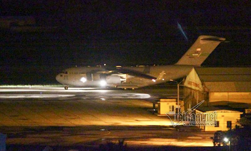 Hai máy bay vận tải quân sự Mỹ liên tiếp hạ cánh xuống Đà Nẵng. Ảnh: Vietnamnet |