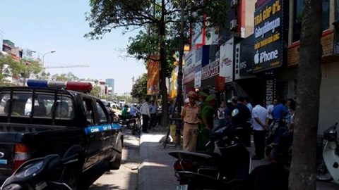| Lực lượng chức năng có mặt tại hiện trường nơi bà cụ bị đột tử trên phố Xã Đàn. |