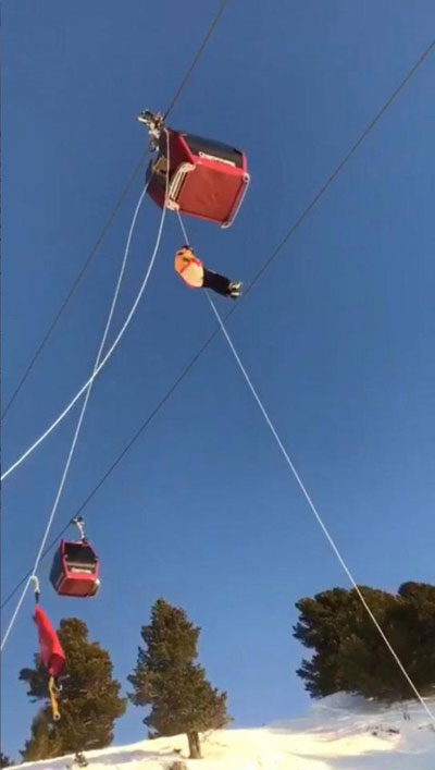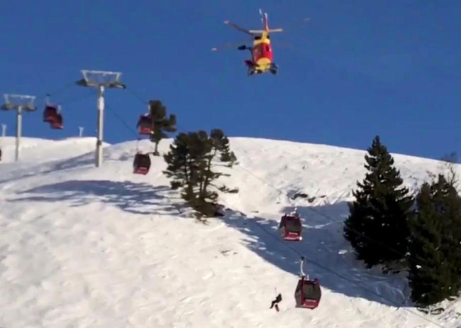 200 người đã bị chôn chân nhiều giờ liền trong những chiếc cáp nằm ở độ cao 25 m so với mặt tuyết khi cáp treo bị hỏng vào khoảng 15h theo giờ địa phương.