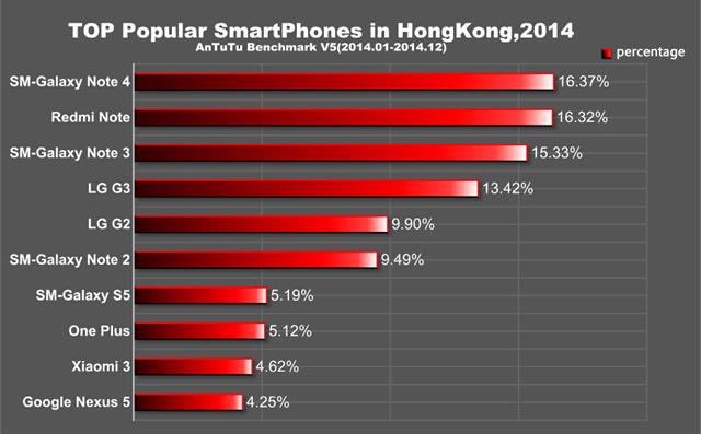 Những thiết bị của Samsung, LG và Xiaomi được người dùng Hồng Kông chào đón nhiệt tình trong năm 2014.