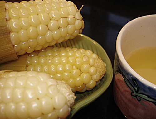 | Ngô luộc đơn giản nhưng là một loại thực phẩm ngũ cốc nguyên hạt và cũng có khi được coi như rau. |
