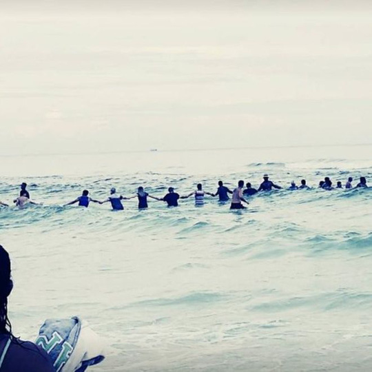 Hình ảnh 80 người nối thành hàng rào sống để cứu một gia đình gặp nạn trên biển. Ảnh: BBC |