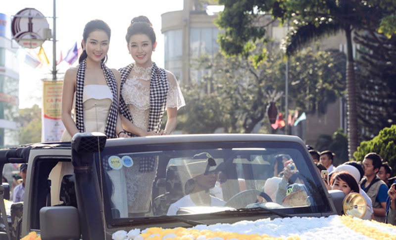 | hậu Huyền My cùng các người đẹp đã tham gia lễ diễu hành đường phố tại Đắc Lắc |