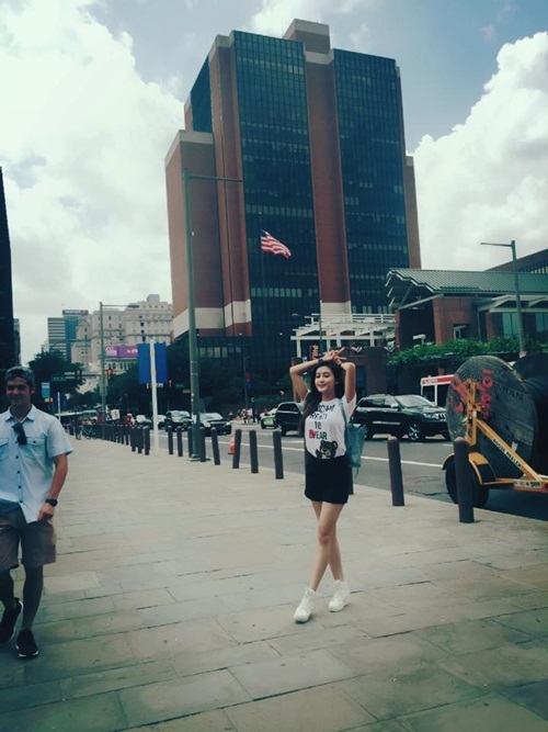 Huyền My rất thích thú và hào hứng nên đã chia sẻ những khoảnh khắc đáng yêu của mình ngày đầu tiên đặt chân tới xứ sở cờ hoa. |