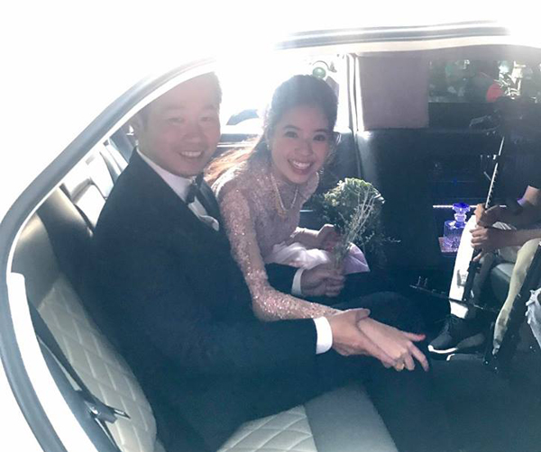 Á hậu Kiều Khanh và ông xã trong đám cưới. Ảnh FBNV |