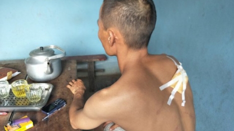 Sang nhà chủ để lấy tiền công nhưng không được dẫn đến cãi vã, anh Tuyến thợ xây bị con trai chủ nhà cầm dao chém nhập viện.