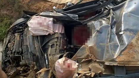 Do vào cua với tốc độ cao nên đã mất lái, lao xuống ruộng ven đường. Sau khi lăn nhiều vòng, chiếc xe bị méo mó, toàn bộ vỏ xe biến dạng, đầu xe nát bét và ngập dần trong bùn đất dưới ruộng.