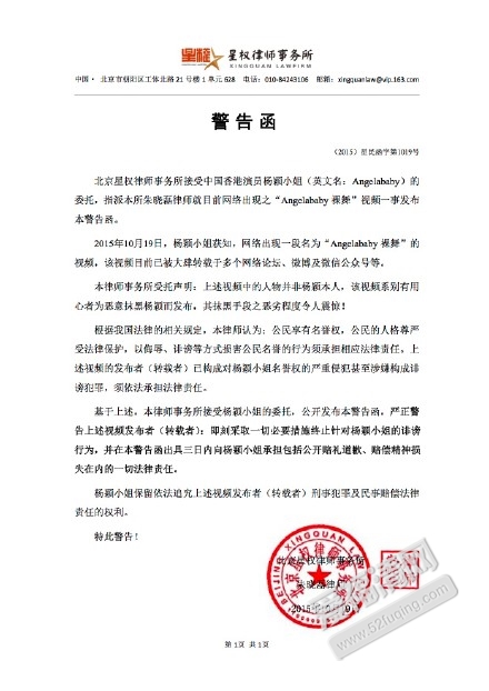 | Văn bản tố cáo của bên luật sư Angelababy. Ảnh: 52fuqing |