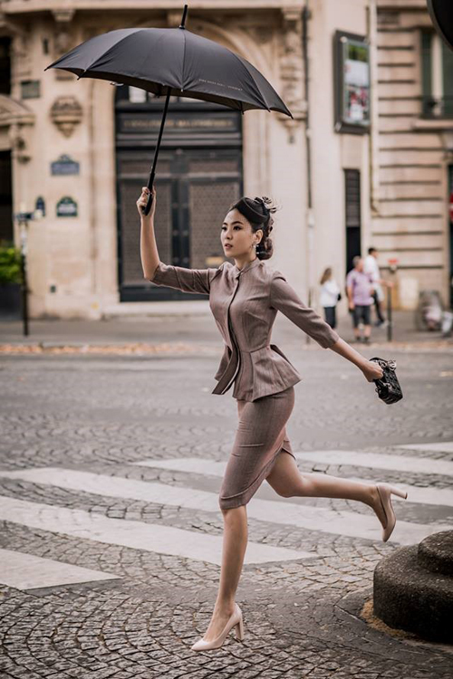 | Mai Ngọc tạo dáng gợi cảm trên đường phố Paris. Ảnh internet |