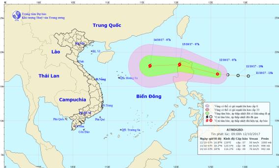 Theo Trung tâm Dự báo Khí tượng và Thủy văn Trung ương, hồi 7 giờ ngày 12/10, vị trí tâm áp thấp nhiệt đới ở vào khoảng 16,8 độ Vĩ Bắc; 126,0 độ Kinh Đông, cách đảo Lu-dông (Phi-líp-pin) khoảng 420km về phía Đông. Sức gió mạnh nhất ở vùng gần tâm áp thấp nhiệt đới mạnh cấp 7 (50-60km/giờ), giật cấp 9.