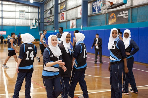 Các nữ sinh trường Al-Taqwa trong giờ học bóng rổ. |