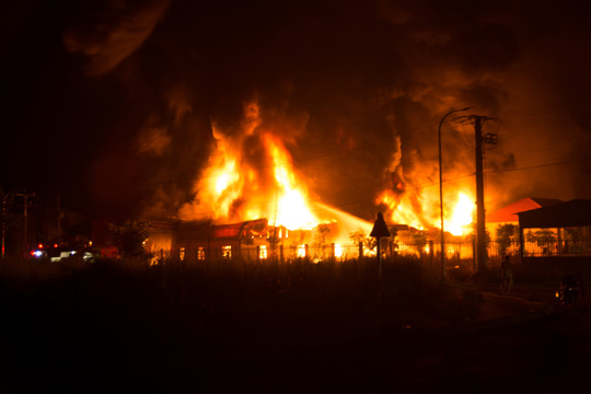 Khoảng 5 phút sau đó, khi mọi người ra khỏi nhà để xem chuyện gì đã xảy ra thì phát hiện ngọn lửa đang bốc cao dữ dội tại khu vực sản xuất của Công ty TNHH MTV Thanh Nhựt Huy.