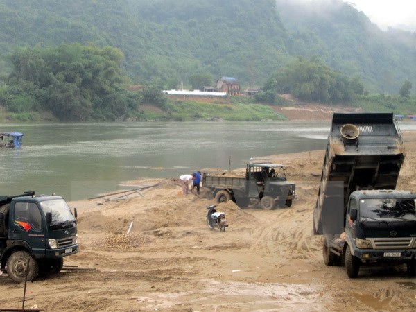 Điểm khai thác cát trên sông Lô, Tuyên Quang. (Ảnh Quang Đán/TTXVN) |