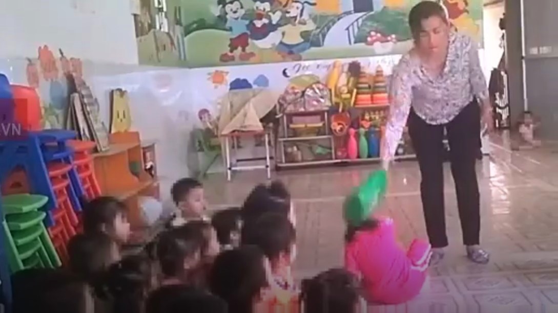 Nhiều bé bị tát vào mặt liên tiếp, bị đánh bằng muỗng múc canh, đập bình nhựa vào đầu... đến choáng váng. Trong giờ ngủ, một bé trai bị ném vào góc tường và bị bảo mẫu đạp vào bụng.