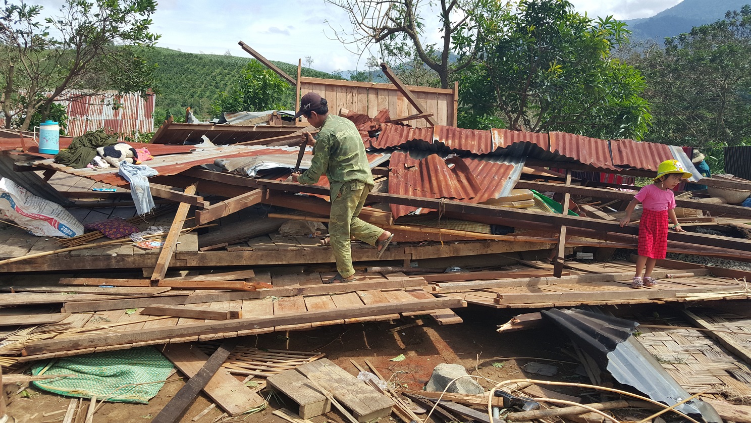 Anh Y Phương Niê (ngụ buôn Tar) cũng chưa hết sợ hãi kể lại: “Bão vào lúc rạng sáng, gây mưa lớn và gió rất mạnh. Khi phát hiện nhà sắp sập, tôi ôm con cùng vợ chạy sang căn nhà xây của người hàng xóm. Khi đó, gần 10 hộ gia đình cũng trú bão tại đây vì nhà đã sập. Không ngờ, căn nhà xây cũng bị gió thổi tốc mái. Tất cả chúng tôi vừa chạy ra ngoài thì nhà đổ ập xuống. Lúc này, gió thổi như muốn hất tung người lên trời, chúng tôi phải bám vào cây để trụ lại...”.
