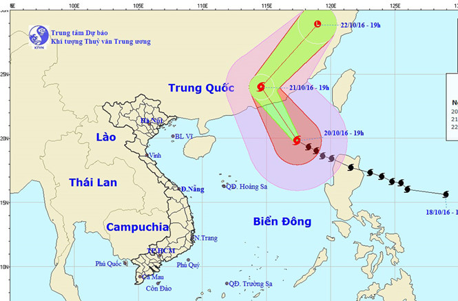 Trong khoảng 24 giờ tới, bão di chuyển theo hướng tây bắc, mỗi giờ đi được khoảng 25 km. Đến 13 giờ ngày 21/10, vị trí tâm bão ở vào khoảng 22,7 độ vĩ bắc và 114,9 độ kinh đông, trên vùng biển phía đông khu vực Hồng Kông, với sức gió mạnh nhất vùng gần tâm bão mạnh cấp 13, giật cấp 16. Theo đó, Trung tâm dự báo khí tượng thủy văn T.Ư cảnh báo, do ảnh hưởng của bão, bắt đầu từ ngày 21/10, vùng biển phía bắc khu vực bắc Biển Đông có gió mạnh cấp 8 - 11, vùng gần tâm bão đi qua cấp 12 - 13, giật cấp 16 khiến biển động dữ dội.