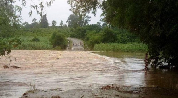 Cầu tràn ở Nghệ An bị ngập chia cắt giao thông. |