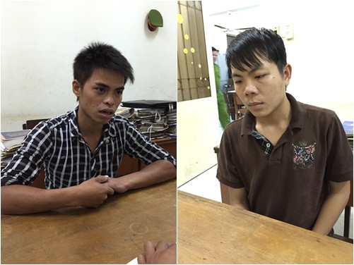 Nguyễn Tuấn Vũ (bên trái) và Phạm Đức Nguyên tại cơ quan công an (Ảnh: Báo Người lao động)