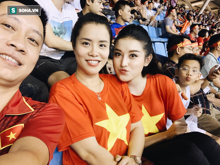 | Huyền My cùng người thân tới cổ vũ Việt Nam ở trận gặp Malaysia hôm 16/11 vừa rồi. |