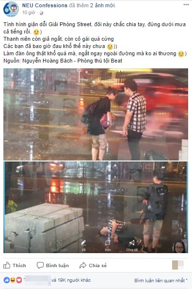 "Tình hình là giận dỗi ở Giải Phóng street, đôi này chắc chia tay, đứng dưới mưa cả tiếng rồi.