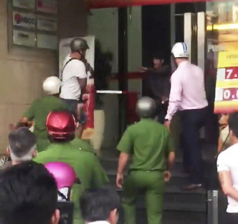 Thấy nguy hiểm đến tính mạng của người tham gia giao thông, một số người dân đuổi theo thanh niên này nhưng người này chạy vào trước sảnh của một ngân hàng trên đường Trần Hưng Đạo, P.5, Q.5 cầm dao cố thủ.