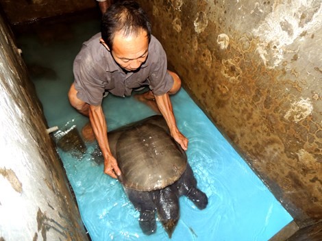 Một ngư dân Bến Tre vừa bắt được một con cua đinh (ba ba Nam Bộ) "khủng" nặng 23,5kg, dài khoảng 81cm, chiều ngang 50cm.