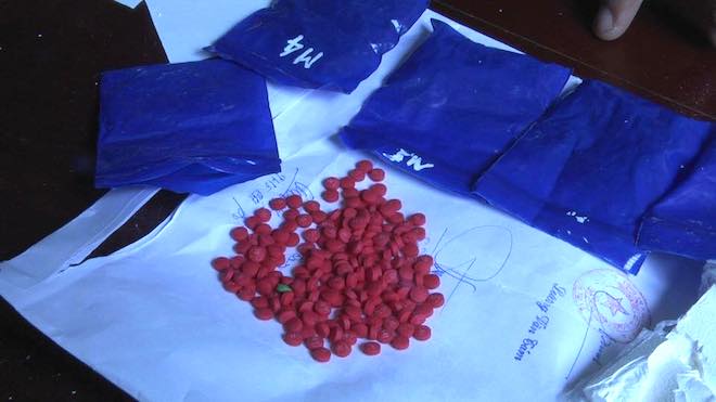 Đối tượng Thò Bá Chài trong khi đang chuẩn bị giao hàng cho các con nghiện đã bị lực lượng chức năng bắt giữ thu được 1 bánh heroin và gần 1000 viên má túy tổng hợp.