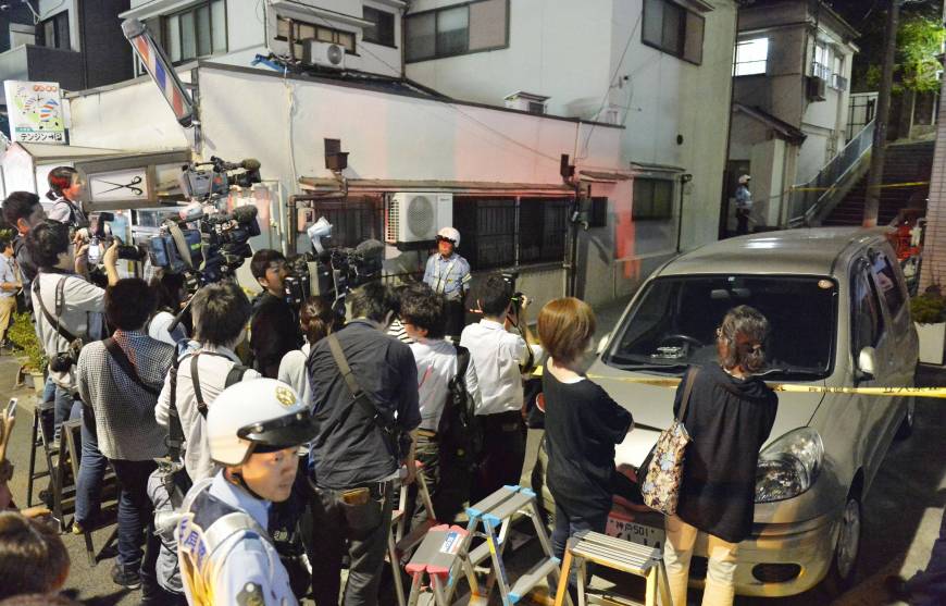 Các nhà báo tập trung tại một khu dân cư ở phường Nagata, thành phố Kobe, nơi cảnh sát phát hiện một túi nhựa có chứa bộ phận thi thể nạn nhân