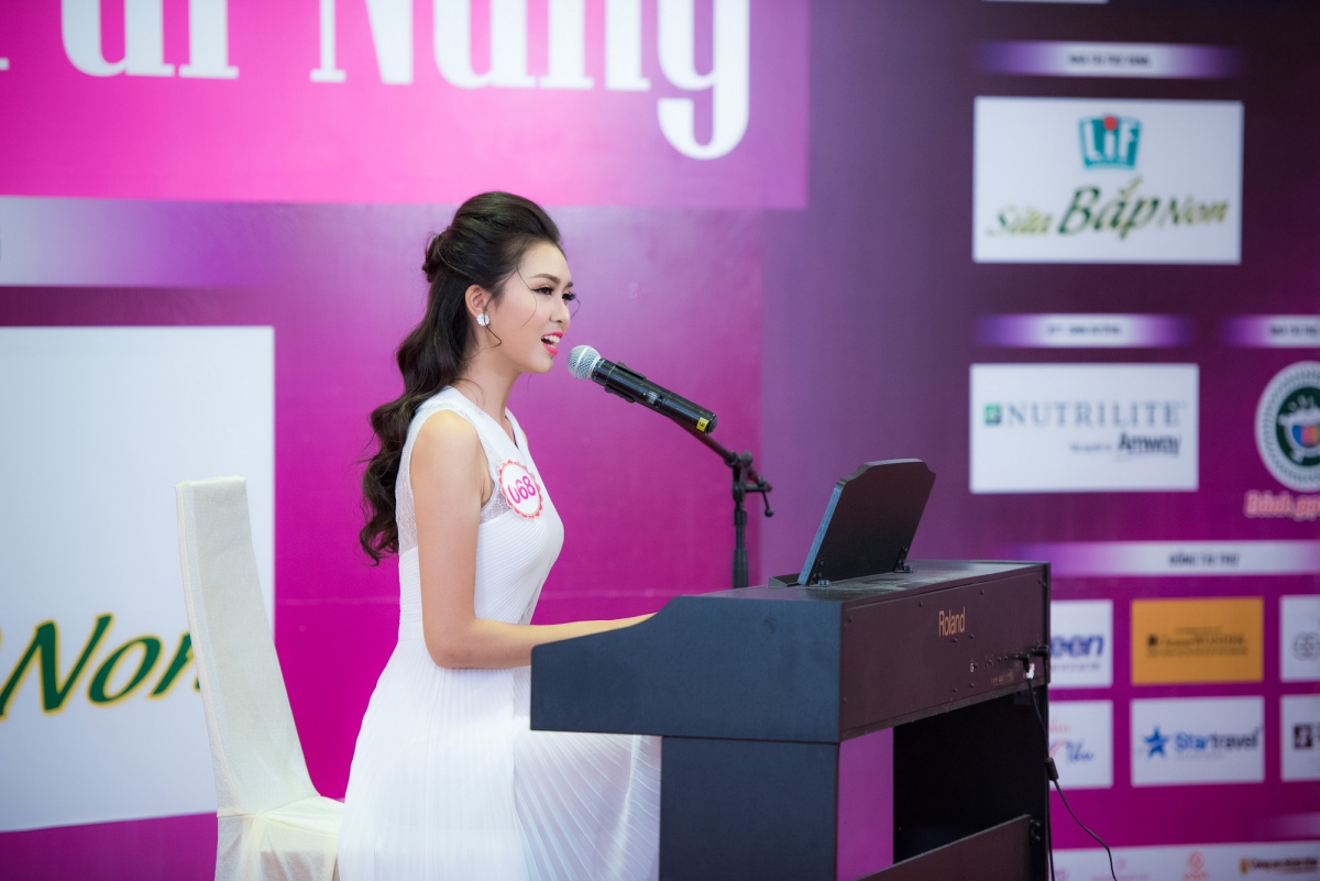 Trần Huyền Trang (SBD 286) khoe tài năng vẽ thuỷ ấn độc đáo. Đây là bộ môn vẽ tranh trên nước, dùng sơn tổng hợp đổ lên mặt nước để tạo những đường nét không xác định. Bùi Nữ Kiều Vỹ(SBD 293)duyên dáng trong áo tứ thân trên sân khấu. Người đẹp Quảng Nam thể hiện điệu múa dân gian dẻo dai cuốn hút và nhận được sự chú ý theo dõi của các thí sinh khác.