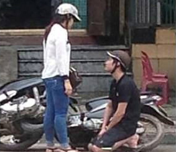 Trước đó, cảnh một nam thanh niên đang quỳ gối trước mặt một cô gái tại thành phố Thái Nguyên cũng được cư dân mạng bàn tán rất nhiều.