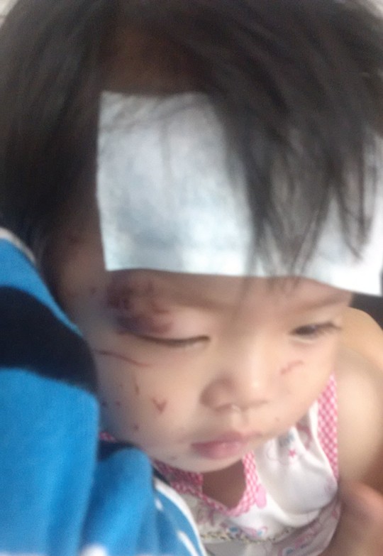 Bé gái 11 tháng tuổi bị nhiều vết thương trên mặt khi đi nhà trẻ. Ảnh gia đình cung cấp cho báo chí |