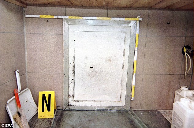 | Cửa căn hầm nơi Natascha bị giam cầm. Ảnh: Daily Mail |