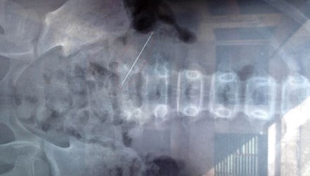 Theo các bác sĩ, may mắn chiếc kim đã không đâm thủng tạng vào ổ bụng nên không nguy hiểm đến tính mạng.