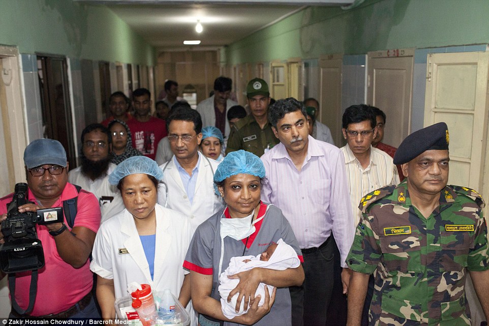 Trải qua 3 giờ phẫu thuật, cả mẹ và bé đều an toàn. Mẹ bé gái bị trúng đạn vào bụng khi tiến vào dòng người biểu tình tại Bangladesh hồi tháng 7.