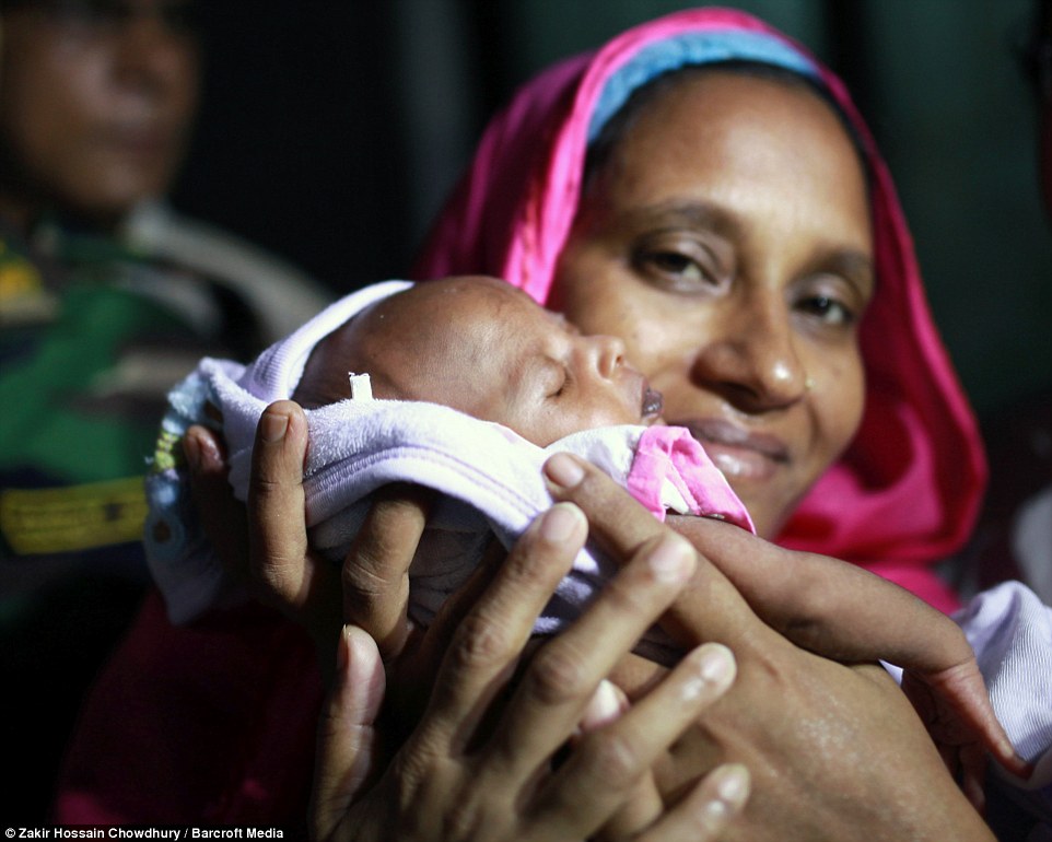 Bé Suraiya, 1 tháng tuổi, đã bị trúng đạn từ trong bụng mẹ. Cuối cùng, cô bé cũng được đoàn tụ với mẹ tại Dhaka, Bangladesh. |