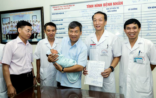 | Cháu bé được GS Nguyễn Anh Trí đặt tên là Nguyễn Phước Đặng với mong muốn cháu sẽ gặp nhiều điều tốt lành. Ảnh: Viện huyết học |