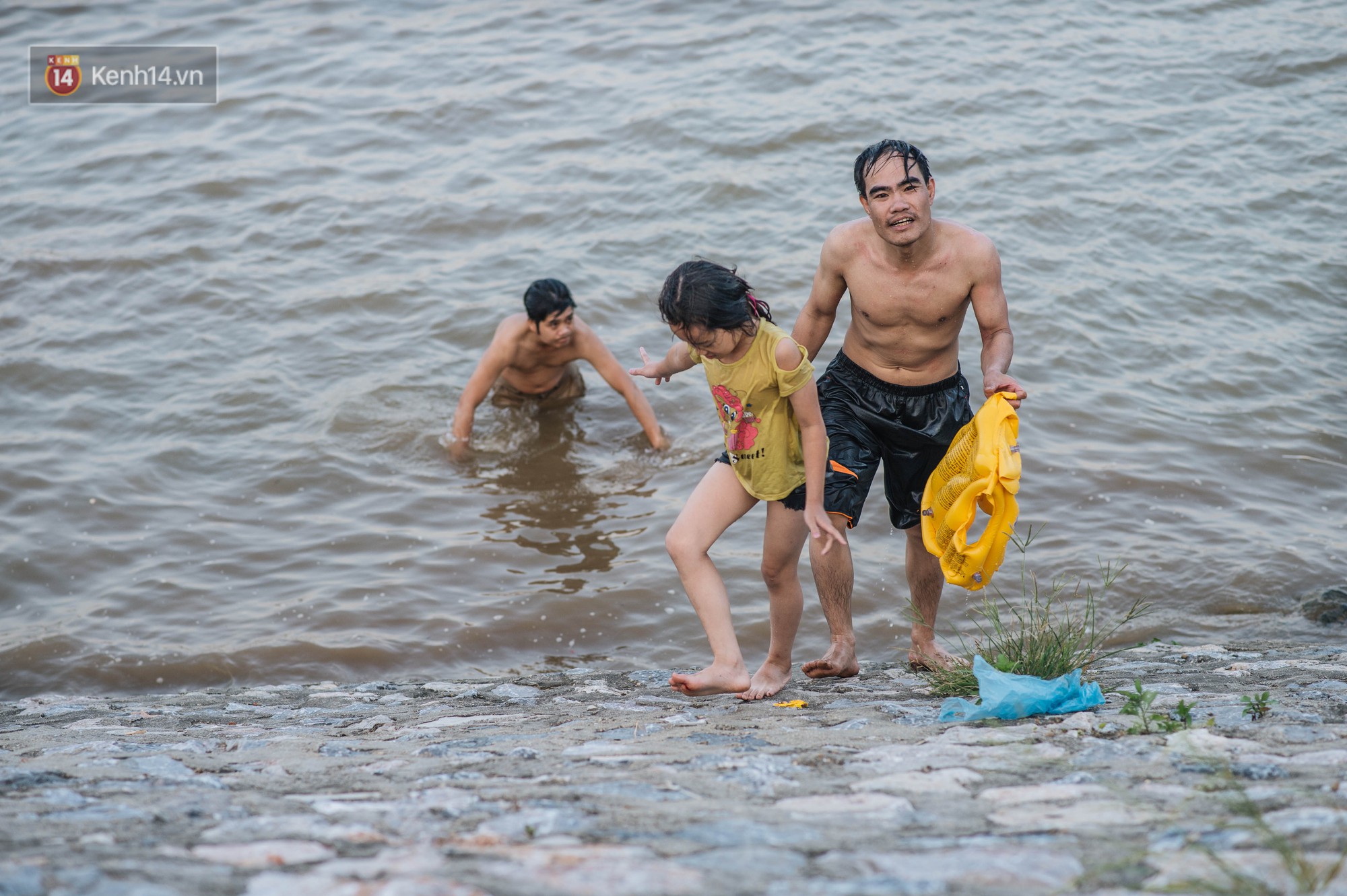 Anh Long (quận Hoàng Mai) chia sẻ, chiều chiều anh vẫn lái xe máy chở con gái tới bến đò tập bơi. Ở đây không gian mở và tiết trời dễ chịu nên rất thích hợp cho những buổi học bơi miễn phí. Dù biết khu vực có treo biển cấm bơi nhưng anh Long khẳng định chỉ cho con tập ở chỗ nông gần bờ, kiên quyết giám sát bé hết mực để không xảy ra bất cứ sự cố nào.