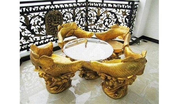 | Bộ bàn ghế dát vàng. Ảnh internet |