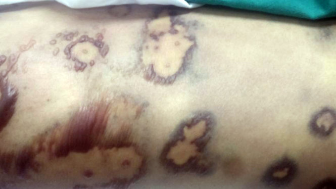 Các nốt ban lạ xuất hiện trên da của bệnh nhân. Ảnh: BV cung cấp |