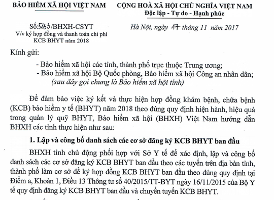 Theo đó, ông Lê Văn Phúc - Phó trưởng ban phụ trách Ban Thực hiện Chính sách BHYT, Bảo hiểm xã hội (BHXH) Việt Nam, trong công văn 5163/BHXH-CSYT, ngày 17-11-2017 gửi BHXH các tỉnh, thành phố hướng dẫn về ký hợp đồng và thanh toán chi phí khám chữa bệnh (KCB) BHYT năm 2018, BHXH Việt Nam có yêu cầu các cơ sở y tế tư nhân bổ sung các văn bản còn thiếu theo quy định.