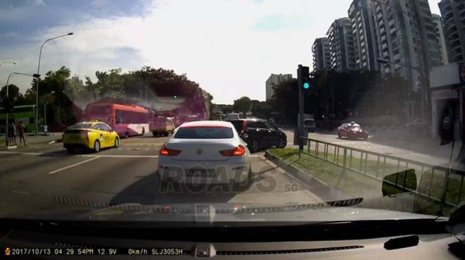 Mở đầu đoạn video được đăng tải trên ROADS.sg – trang Facebook về an toàn giao thông của Singapore là hình ảnh một chiếc đang thực hiện xi nhan và rẽ phải khi đèn tín hiệu chuyển xanh.