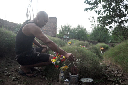 Anh Dũng thắp hương tại nghĩa địa vô danh.