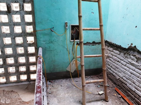 | Hiện trường nơi 3 công nhân bị điện giật. |