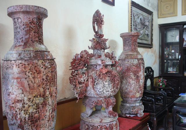 Cũng theo ông Minh, để có được độ tinh xảo như hiện giờ, các nghệ nhân phải sử dụng kỹ thuật chạm khắc 3 lớp trên đá. Đây là kỹ thuật cao nhất trong nghề chạm đá.