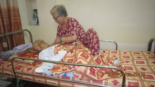 | Bà Tin ân cần chăm sóc cho mẹ |