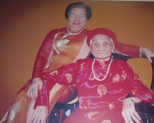 | Bà Tin chụp hình cùng cụ Đôn thời điểm cụ Đôn ở tuổi 108. |