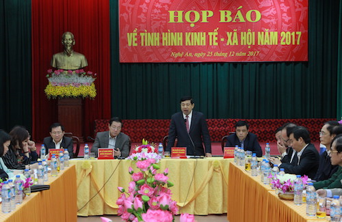 | Chủ tịch UBND tỉnh Nguyễn Xuân Đường chủ trì họp báo chiều 25/12. Ảnh: VnExpress |